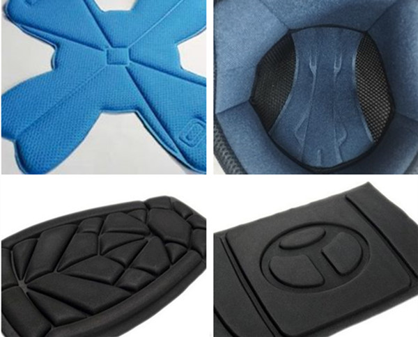 常見的海綿、EVAXPEEPP等復合材料頭盔內襯采用高周波熱合機(也叫熔斷機)加工成型。傳統(tǒng)加工工藝需要烤箱加壓機組合,人工需要放料到烤箱,然后取出熱料放到壓機上壓痕成型,再取出進行裁切處理。高周波熱合機可以采用熔斷模式,片料直接成型完整形狀。