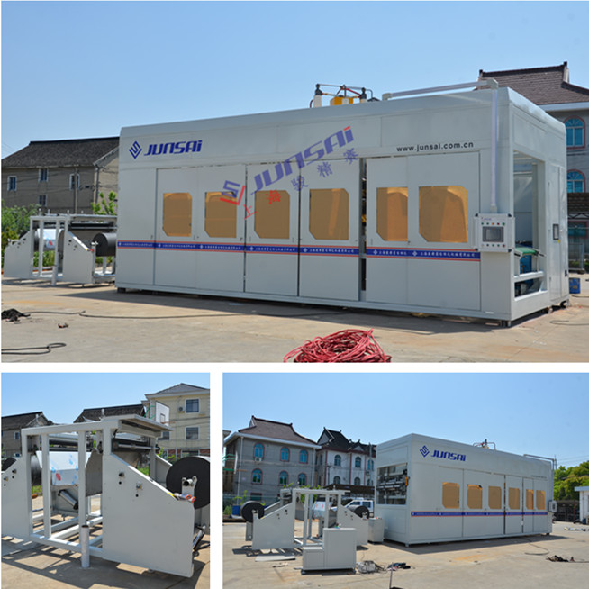 全自動雙層厚片吸塑機(jī)系列產(chǎn)品是采用國外技術(shù)及工藝技術(shù),結(jié)合國內(nèi)市場實際需求,研發(fā)生產(chǎn)的新型全自動厚片吸塑設(shè)備,該機(jī)采用PLC、觸摸屏自動控制系統(tǒng),模塊控溫系統(tǒng),自動鎖模系統(tǒng),可靠性強(qiáng),功能性好,自動化程度高,操作簡單,自動對位上料,自動取成品,大大提高了生產(chǎn)效率。加熱系統(tǒng)采用英國鹵素短波加熱器,短波遠(yuǎn)紅外加熱器優(yōu)勢;紅外線長波,加熱均勻,滲透性強(qiáng),反射效果好,加熱速度快(光熱同步),耗能低。